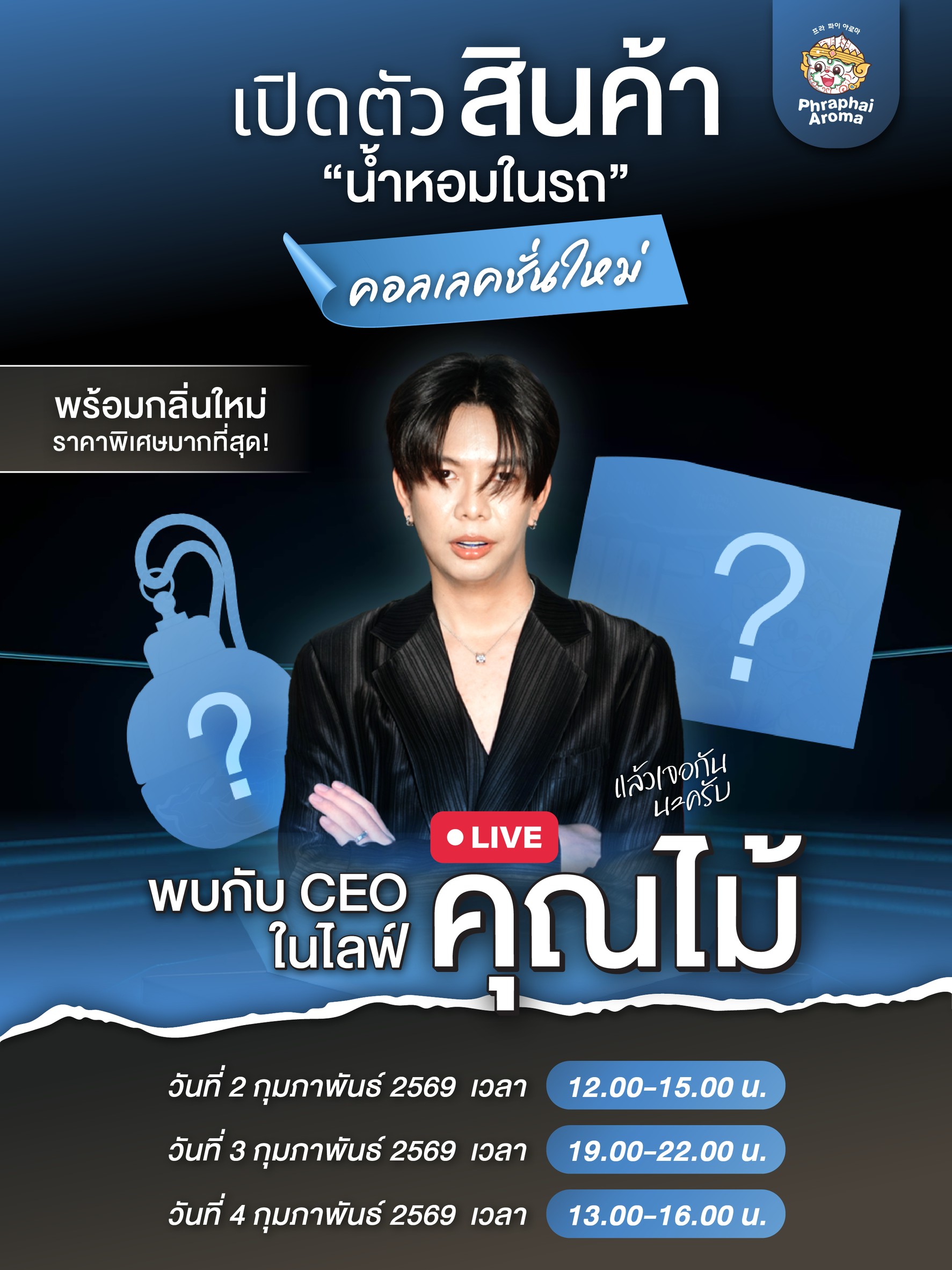 พระพายอโรม่าเปิดตัวน้ำหอมรถยนต์ 12ML. พร้อมไลฟ์สด 2-4 กุมภา